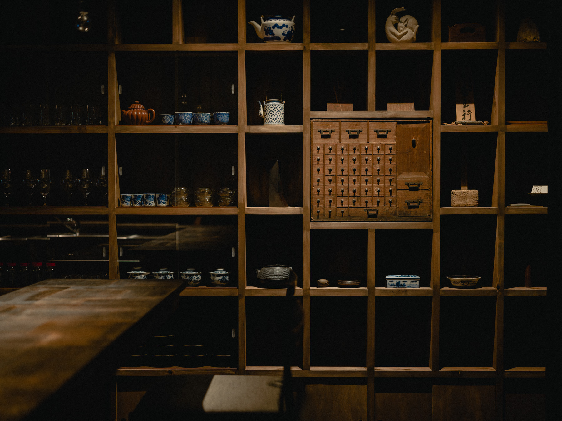 茶とGastronomy 押上にある9坪の倉庫を改装した小さなレストラン。素材を活かし、お茶に寄り添った季節の料理を。お茶の旨みや渋みをベースに「食事中に自然と手が伸びる飲み物」として、甘さを控えた“ティーカクテル”をペアリングとして提供。シェフ清藤とミクソロジスト伊藤が呼吸を合わせて作る、お茶が主役の食体験。